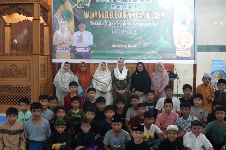 CENTRALNEWS.ID, NATUNA – Pemerintah Kabupaten Natuna menggelar peringatan Malam Nuzulul Qur’an 1447 Hijriah dengan mengusung tema “Menjadikan Al-Qur’an sebagai Teladan dalam Kehidupan.” Kegiatan tersebut berlangsung khidmat di Masjid Agung Baitul Izza pada Jumat (06/03/2026) malam, usai pelaksanaan salat Isya dan Tarawih berjamaah.