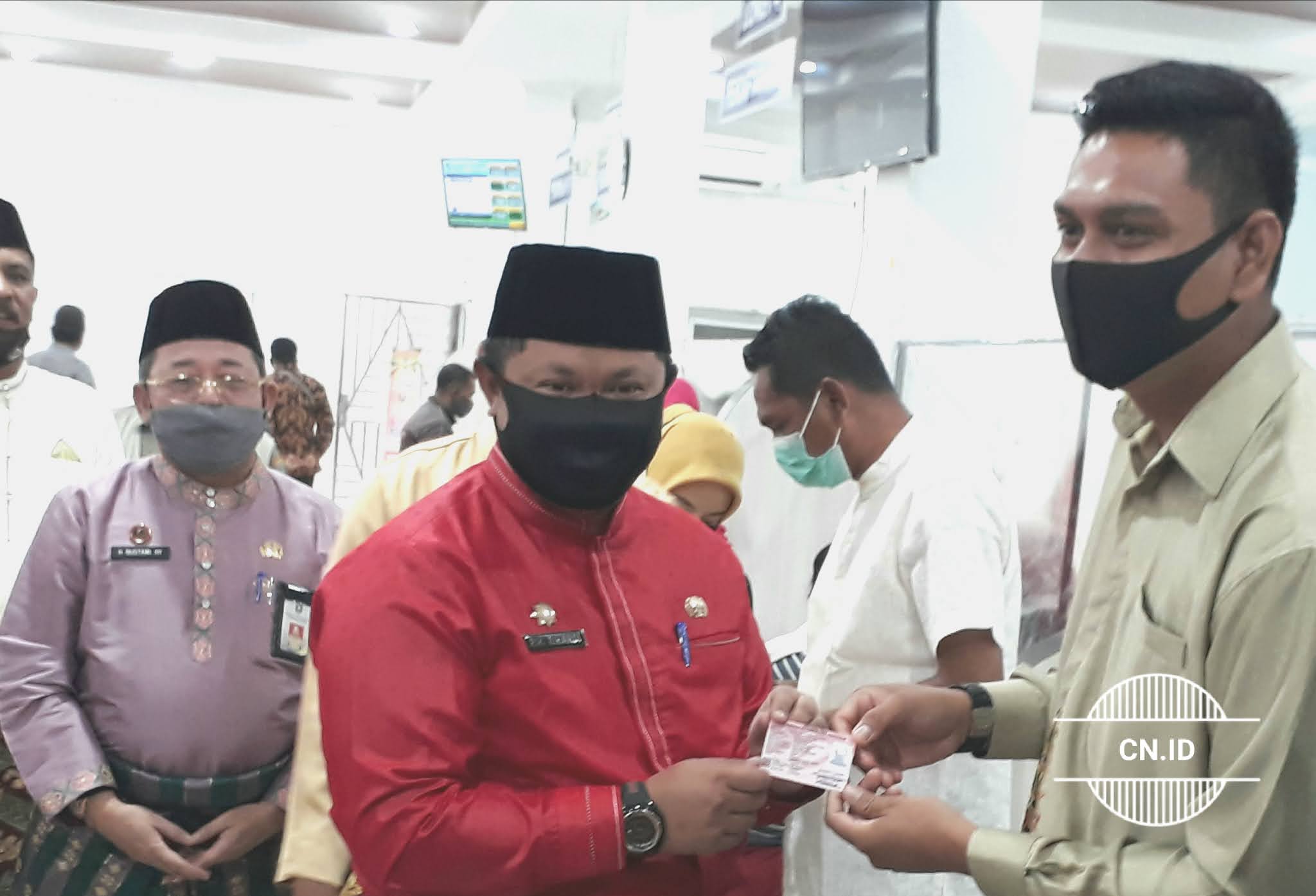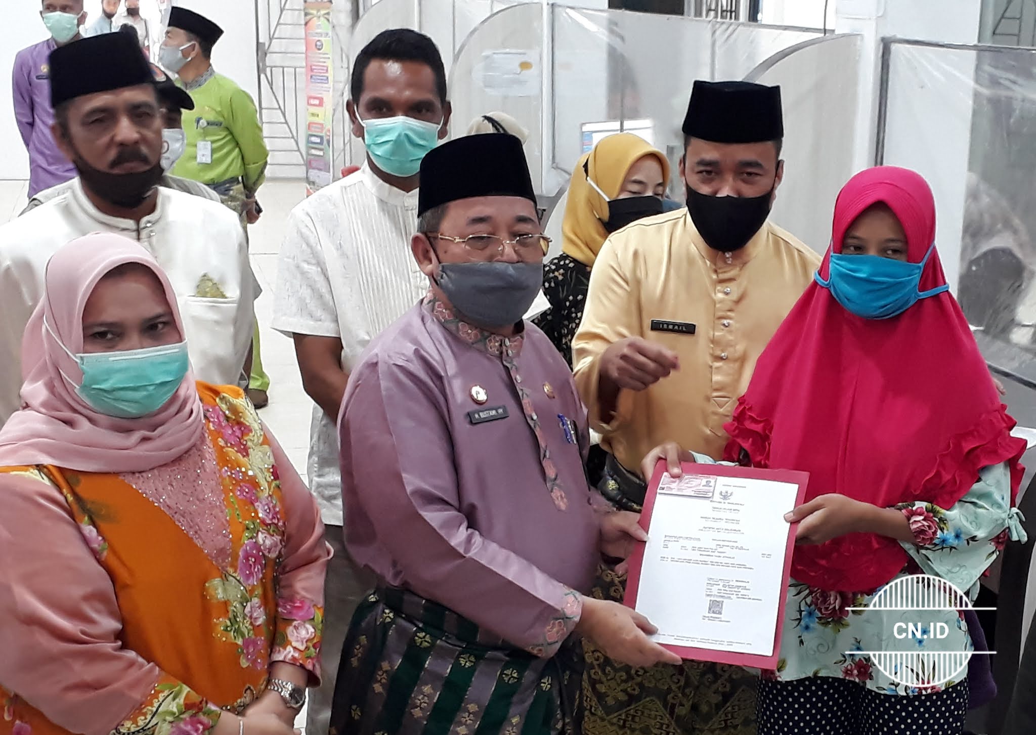 Pelaksana Harian (Plh) Bupati Bengkalis, Bustami HY secara simbolis menyerahkan berkas dan KIA kepada warga | Foto: Bae