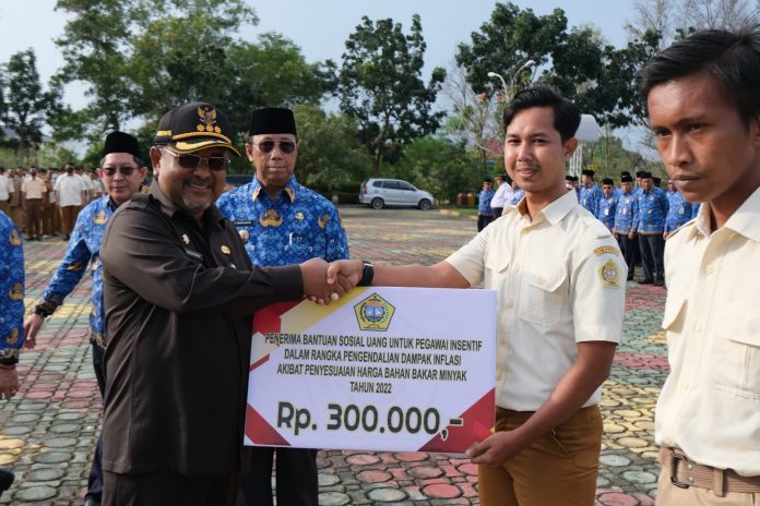 CENTRALNEWS.ID, KARIMUN – Pemerintah Daerah Kabupaten Karimun memberikan bantuan sosial kepada tenaga honorer insentif berupa uang tunai, di Lapangan Kantor Pemkab Karimun, Senin (20/12/2022).