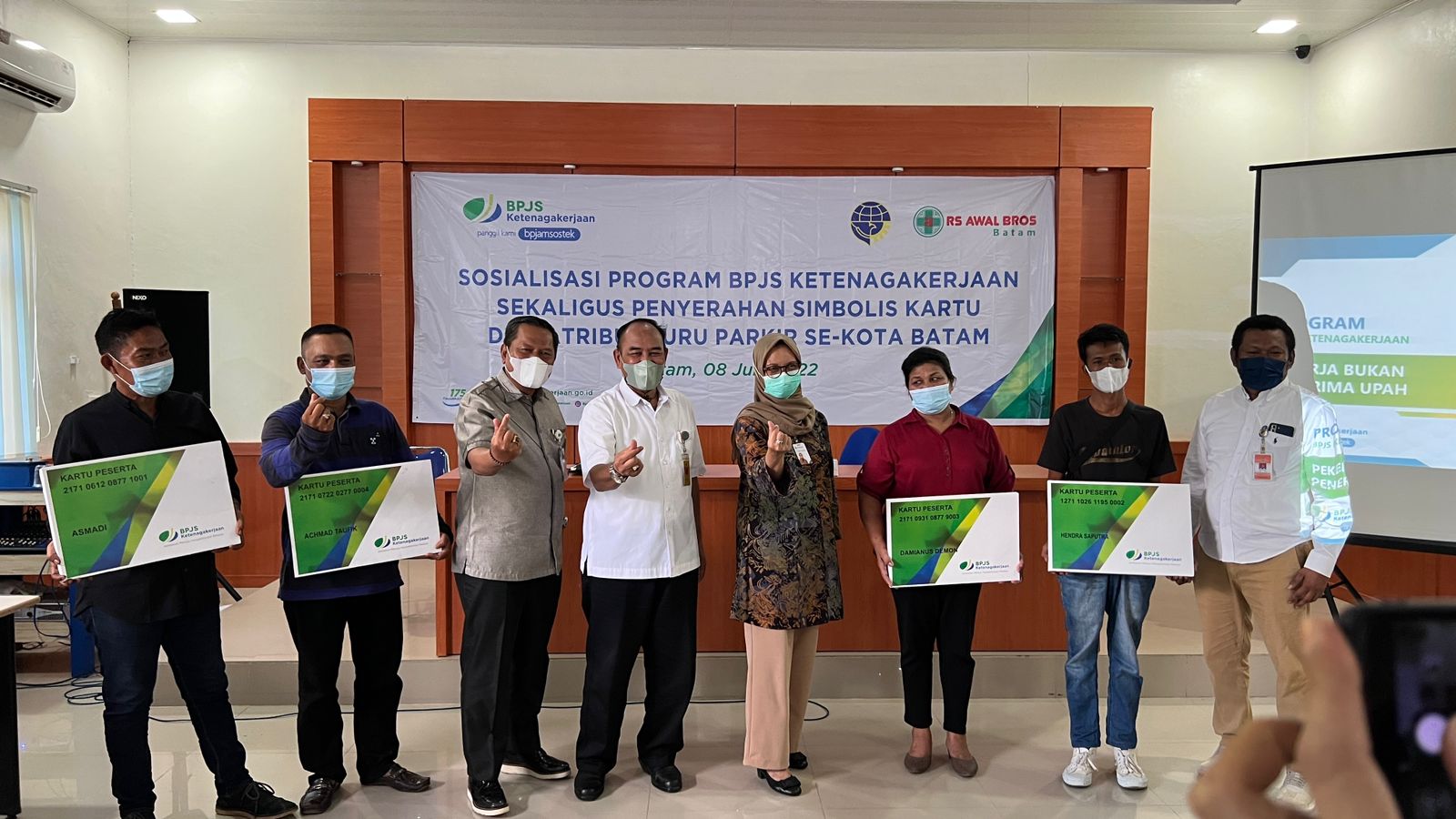 Selain penyerahan kartu peserta, pada kesempatan itu juga pihak BPJAMSOSTEK Batam Nagoya dan Dishub Kota Batam memberikan sosialisasi tentang pemahaman mengenai manfaat program BPJS Ketenagakerjaan kepada Juru Parkir se-Kota Batam, sehingga setelah masa perlindungan yang diberikan RS Awal Bros telah berakhir, para pekerja rentan tersebut mampu melanjutkan kepesertaannya secara mandiri.