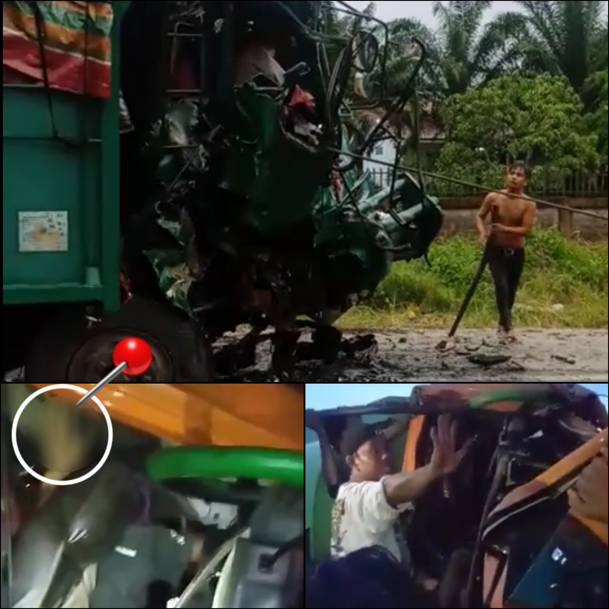 Laka lantas berat itu terjadi sekira pukul 17.00 WIB, di jalan lintas Sumatera, Kilometer (Km) 12, Desa Air Kulim, Kecamatan Bathin Solapan, Kabupaten Bengkalis, Riau. Kedua truk itu disebut laga kambing, kepala menghantam kepala hingga akhirnya remuk tak beraturan.