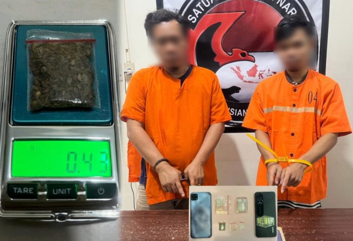 “Pengungkapan ini berawal dari penangkapan terhadap pelaku lain, kemudian dilakukan pengembangan hingga berhasil mengamankan dua pelaku berikut barang bukti narkotika jenis sabu dan ganja,” jelasnya.