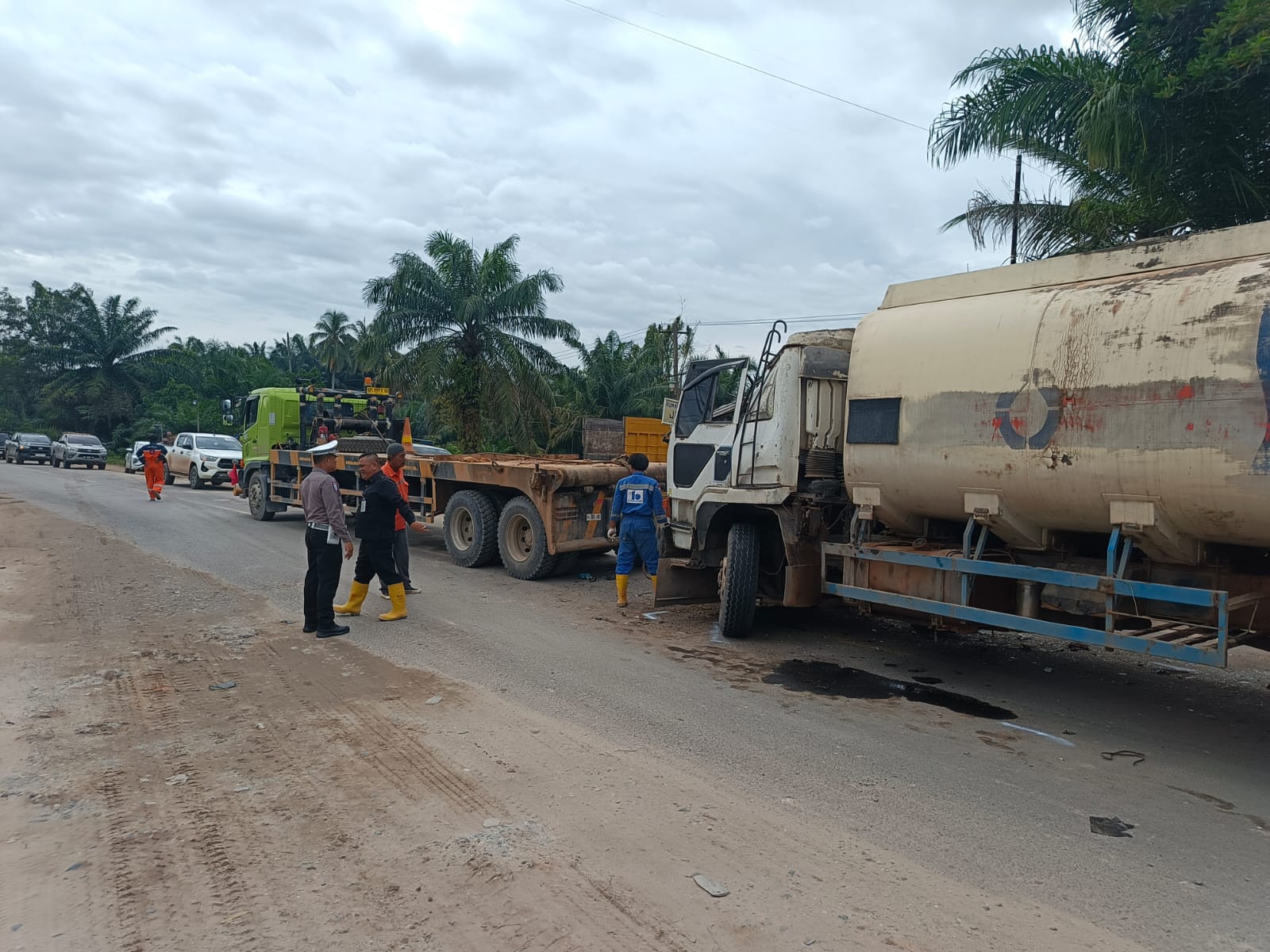 Kasat menjelaskan, peristiwa tersebut berlangsung sekira pukul 05.45 WIB yang melibatkan Truk Tanki CPO BM 9189 RO yang dikemudikan oleh DMS (21) dan Truk Colt Diesel B 8941 AO yang dikemudikan oleh RS (35).