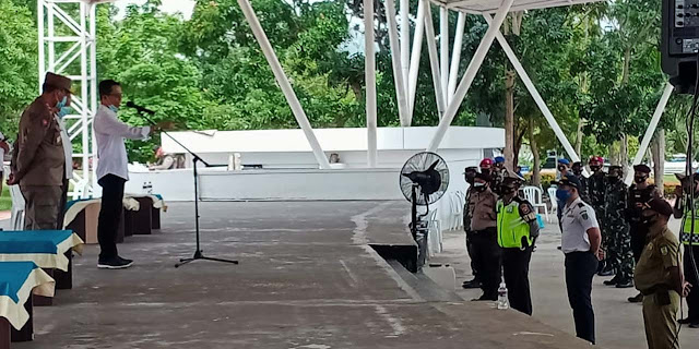 Di Dataran Engku Putri Batam Center, Wakil Wali Kota Batam, Amsakar Achmad, didampingi Kepala Satpol PP Kota Batam, Salim melepas tim gabungan tersebut untuk melakukan razai yustisi penegakan Perwako Batam No.49 tahun 2020.