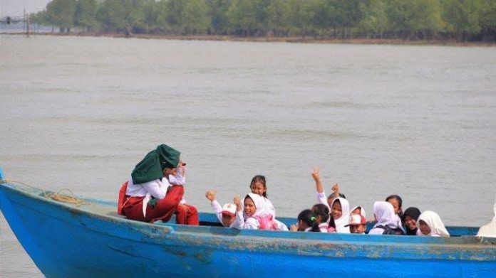 Para siswa dan tenaga pendidik harus bergantung pada transportasi laut untuk mencapai sekolah, yang seringkali menjadi hambatan besar bagi mereka.