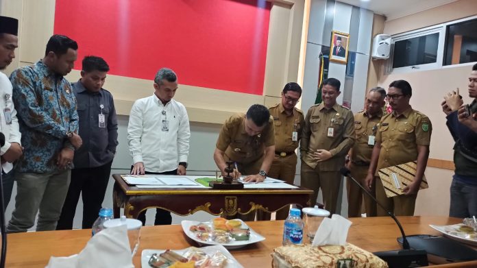 Bupati Natuna Wan Siswandi menandatangani nota kesepakatan hibah dengan KPU dan Bawaslu
