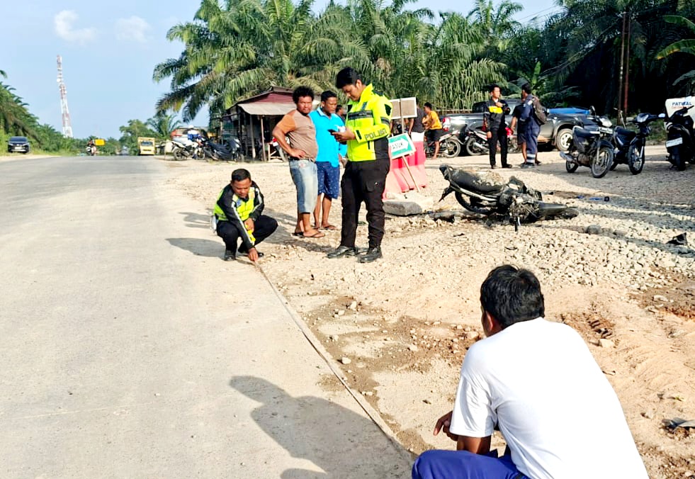 Pada saat bersamaan, datang dari arah berlawanan satu unit sepeda motor merek Honda Revo BM 5963 HF yang dikendarai oleh WP yang berboncengan dengan SH dengan kecepatan tinggi. “Pesepeda motor melaju dengan kecepatan tinggi dan melewati pemandu yang berada di jalan. Dikarenakan jarak yang sudah sangat dekat sehingga sepeda motor tersebut menabrak bagian depan Dumptruck,” kata AKP. Vino.