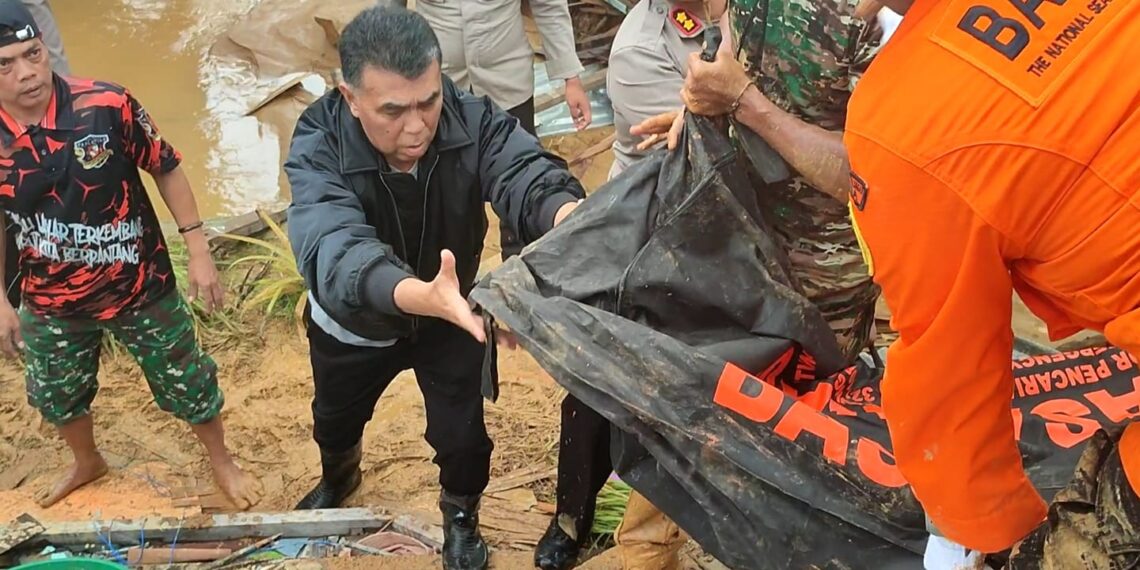 Korban pertama berjenis kelamin laki-laki, berhasil ditemukan dan dievakuasi dari timbunan material longsor sekitar pukul 09.45 WIB.