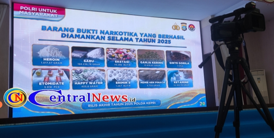 CENTRALNEWS.ID, BATAM – Kepolisian Daerah Kepulauan Riau (Polda Kepri) mencatat capaian signifikan dalam pemberantasan narkotika sepanjang tahun 2025.