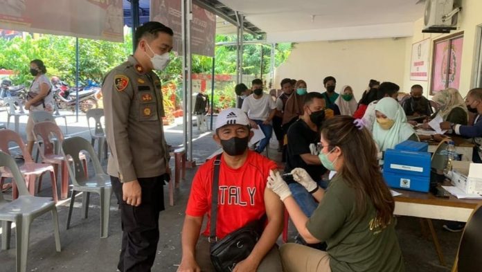 CENTRALNEWS.ID, BATAM – Kepolisian Sektor (Polsek) Lubukbaja menargetkan mampu menyalurkan vaksinasi Covid-19 untuk 200 orang setiap harinya. Hal itu dilakukan sebagai bentuk mendukung program pemerintah untuk mempercepat terbentuknya kekuatan komunal atau herd immunity. Kepala Kepolisian Sektor (Kapolsek) Lubukbaja, Komisaris Polisi (Kompol) Budi Hartono, mengatakan, pihaknya menggelar vaksinasi tersebut untuk masyarakat setiap minggunya, mulai dari Hari