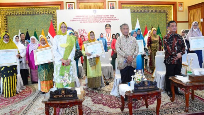 Pemberian penghargaan tersebut menjadi bagian dari Peringatan Hari Kartini ke-144 tingkat Provinsi Kepri di Gedung Daerah, Tanjungpinang, Kamis (21/4/2022).