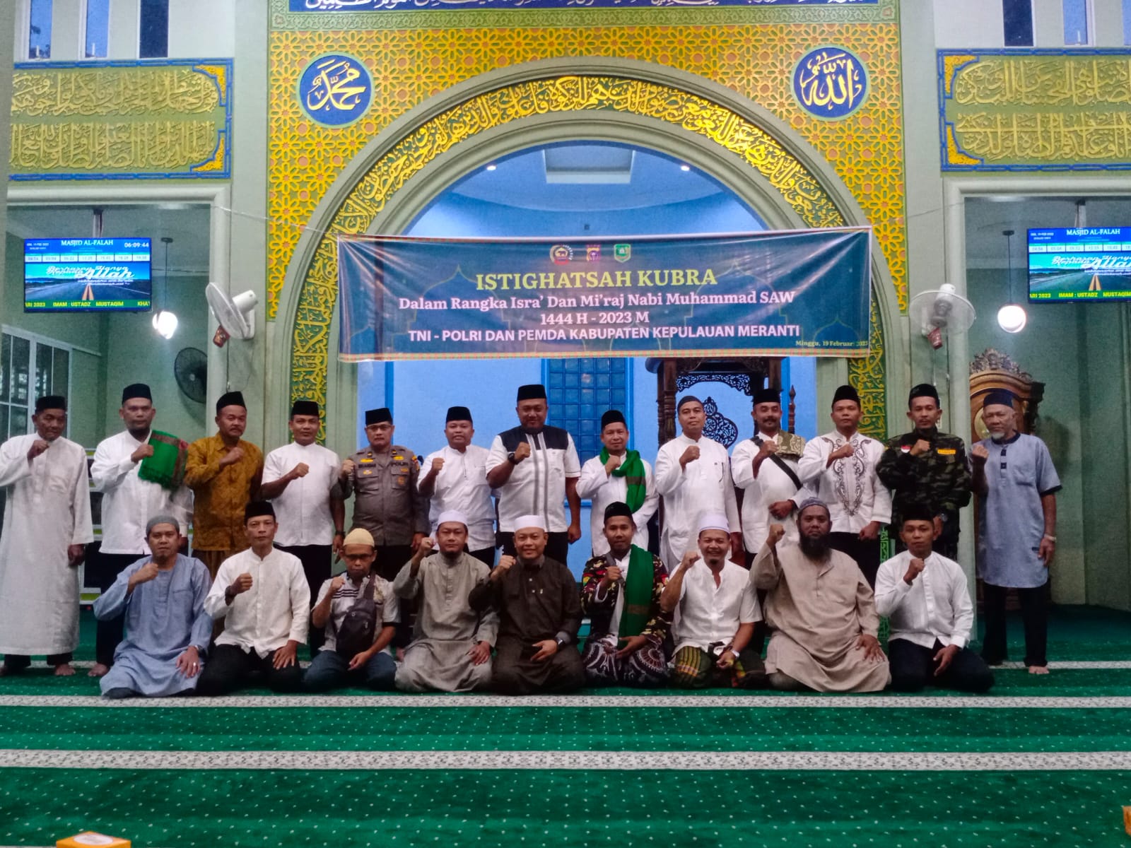 CENTRALNEWS.ID, MERANTI – Umat islam di tanah air masih terpaut larut dalam momen sakral Istighatsah Qubro sempena Isra’ Mi’raj Nabi Muhammad SAW tahun 1444 Hijriah. Turut semarakkan hal itu, Pjs. Danramil 02 Tebing Tinggi Lettu. Inf. Ucok Doni Samosir bersama Babinsa dan prajurit lainnya hadir dan berbaur bersama personel Polri, perangkat pemerintah dan jamaah Masjid Al-Fallah Selat Panjang Kota, Kecamatan Tebing Tinggi, Kabupaten Kepulauan Meranti, Riau, Minggu (19/2).