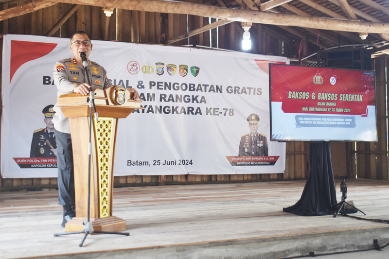 CENTRALNEWS.ID, BATAM – Kepolisian Daerah Kepulauan Riau (Polda Kepri) menyelenggarakan bakti sosial dan pengobatan gratis untuk masyarakat di pantai Bale-bale, Kelurahan Sambau, Kecamatan Nongsa, Kota Batam, Kepulauan Riau, Selasa (25/6/2024).