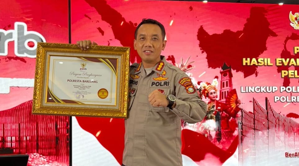 CENTRALNEWS.ID, JAKARTA – Kepala Kepolisian Resor Kota (Kapolresta) Barelang, Komisaris Besar Polisi (Kombes Pol) Nugroho Tri Nugroho, menerima penghargaan dari Kementerian Pendayagunaan Aparatur Negara dan Reformasi Birokrasi (MENPAN-RB). Penghargaan yang diberikan yakni sebagai pelayanan publik kategori A predikat pelayanan prima dalam rangka hasil evaluasi pelayanan publik tahun 2021 untuk lingkup Kepolisian Resor (Polres), Kepolisian Resor