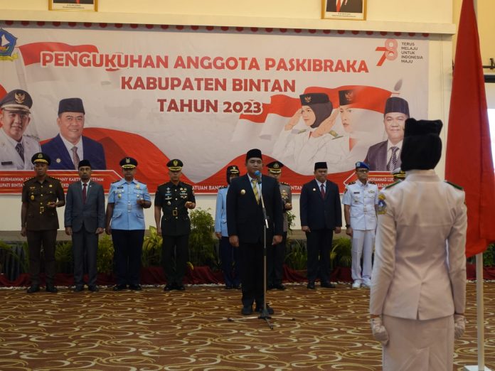 CENTRALNEWS.ID, BINTAN – Bupati Bintan, Roby Kurniawan kukuhkan Pasukan Pengibar Bendera (Paskibraka) untuk peringatan HUT RI Ke 78 besok (17/8) di Kecamatan Mantang. Para pengemban tugas menaikan sang sangka merah putih dipercayakan kepada 28 siswa SLTA sederajat se kabupaten Bintan.