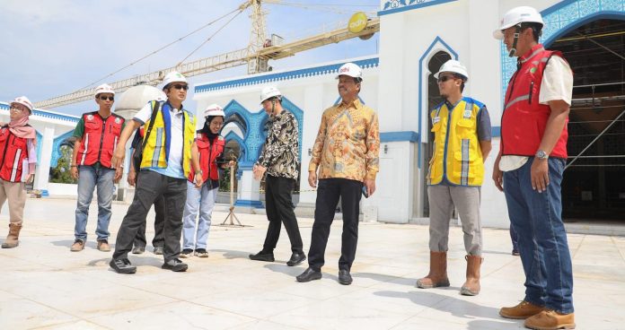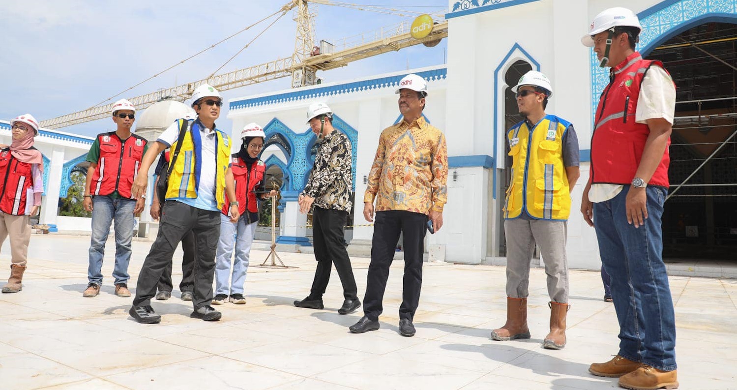 CENTRALNEWS.ID, BATAM – Wali Kota Batam, Muhammad Rudi, meninjau proses pembangunan Masjid Agung Batam Centre, Sabtu (8/6/2024). Masjid kebanggaan masyarakat Batam itu akan diresmikan 30 Agustus mendatang.