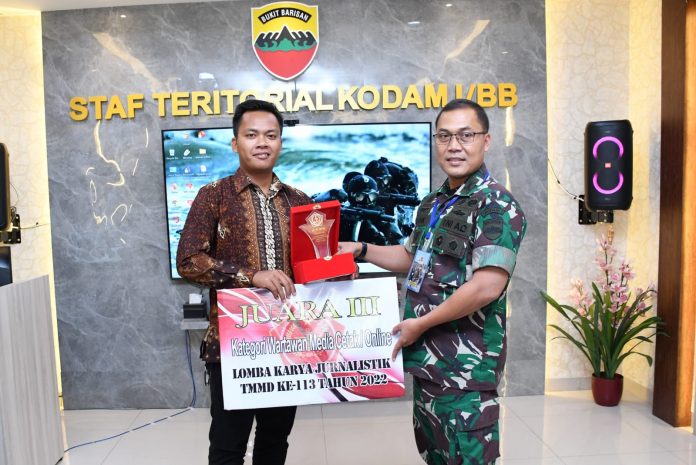 CENTRALNEWS.ID, MEDAN – Wartawan CENTRALNEWS.ID (Central Network) meraih juara tiga Nasional pada kategori Media Cetak/Online sempena Lomba Karya Jurnalistik (LKJ) perhelatan TNI Manunggal Membangun Desa (TMMD) ke-113 yang diselenggarakan oleh Dinas Penerangan Angkatan Darat (Dispenad) Markas Besar TNI AD (Mabesad) Republik Indonesia