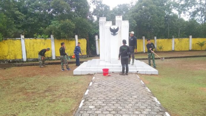 Sambut Hari Bakti TNI AU ke 76, Personel Angkatan Udara Ranai Bersihkan Taman Makam Pahlawan