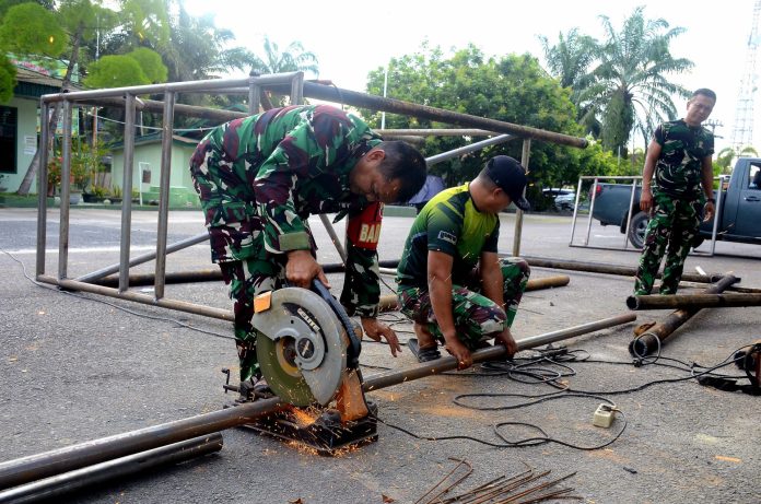 “Semua perakitan menara air kita lakukan di halaman Koramil 03 Mandau agar lebih cepat dan lengkap fasilitasnya. Sampai hari ini kita telah selesaikan dua unit rangkaian menara air, selanjutnya akan dibersihkan lalu dicat agar finishingnya lebih bagus,” terangnya. (Bres)