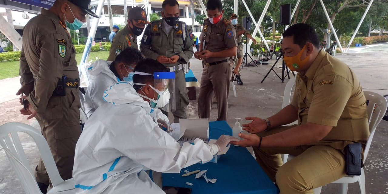 Sejumlah personel dari Satpol PP, TNI, Kejaksaan, Diitpam BP Batam, Dishub Kota Batam, satu persatu di rapid test oleh tim medis yang disiapkan Dinkes Kota Batam.