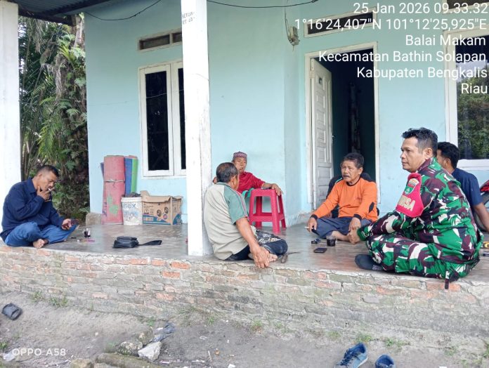 CENTRALNEWS.ID, DURI – Danramil 03 Mandau, Kapten Czi. Suratmin diwakili Babinsa Serda Zetrio Panjaitan tajak komunikasi sosial bareng warga binaan di kelurahan Batang Serosa, kecamatan Mandau dalam rangka menyuluhkan semangat kebangsaan serta pengamalan nilai luhur Pancasila, Minggu (25/1).