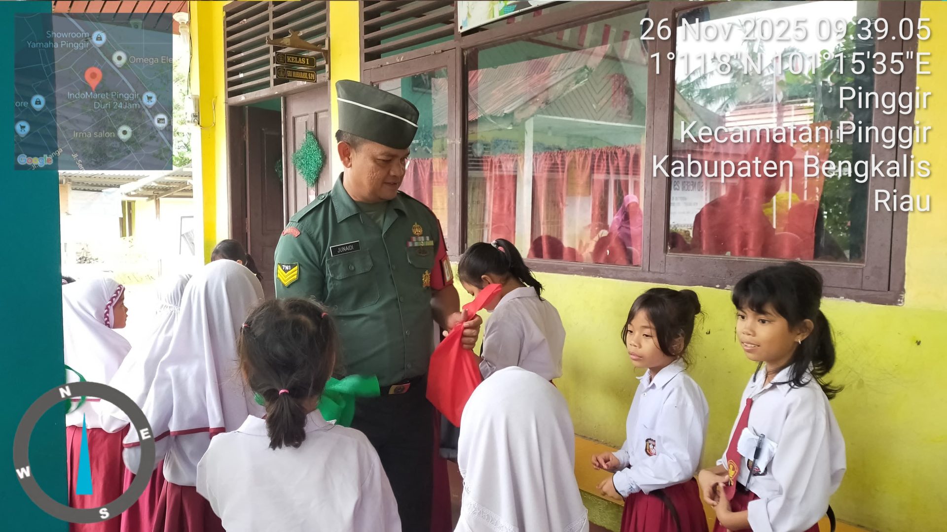 CENTRALNEWS.ID, DURI – Bertempat di lingkungan desa Pinggir, kecamatan Pinggir – Duri, Danramil 03 Mandau Kapten Czi. Suratmin diwakili Babinsa Serka Junaidi pupuk semangat nasionalisme dan suluhkan wawasan kebangsaan, serta pengamalan butir-butir Pancasila di kalangan Anak-anak dan pelajar, Rabu (26/11).