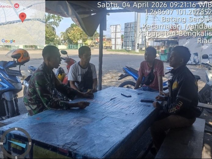 CENTRALNEWS.ID, DURI – Danramil 03 Mandau, Kapten Czi. Suratmin diwakili Babinsa Serka Robbi tajak komunikasi sosial bareng warga binaan di wilayah kelurahan Batang Serosa, kecamatan Mandau dalam rangka menyuluhkan semangat kebangsaan serta pengamalan nilai luhur Pancasila, Sabtu (4/4).