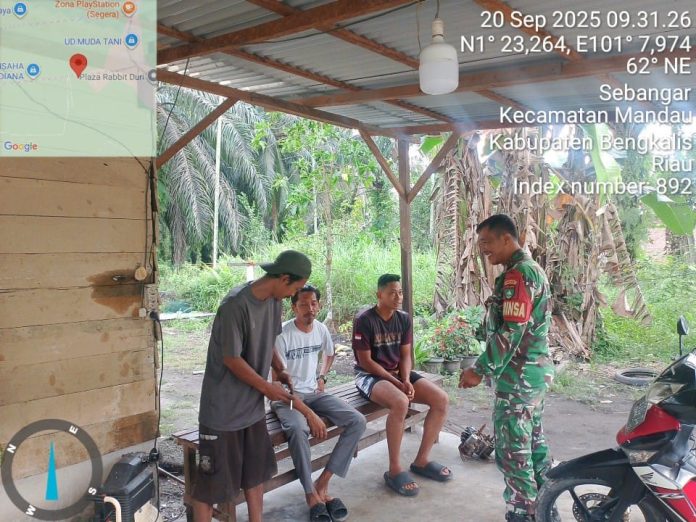 CENTRALNEWS.ID, DURI – Danramil 03 Mandau, Kapten Czi. Suratmin diwakili Babinsa Sertu Jonni R tajak komunikasi sosial bareng warga binaan di desa Sebangar, kecamatan Bathin Solapan dalam rangka menyuluhkan semangat kebangsaan serta pengamalan nilai luhur Pancasila, Sabtu (20/9).
