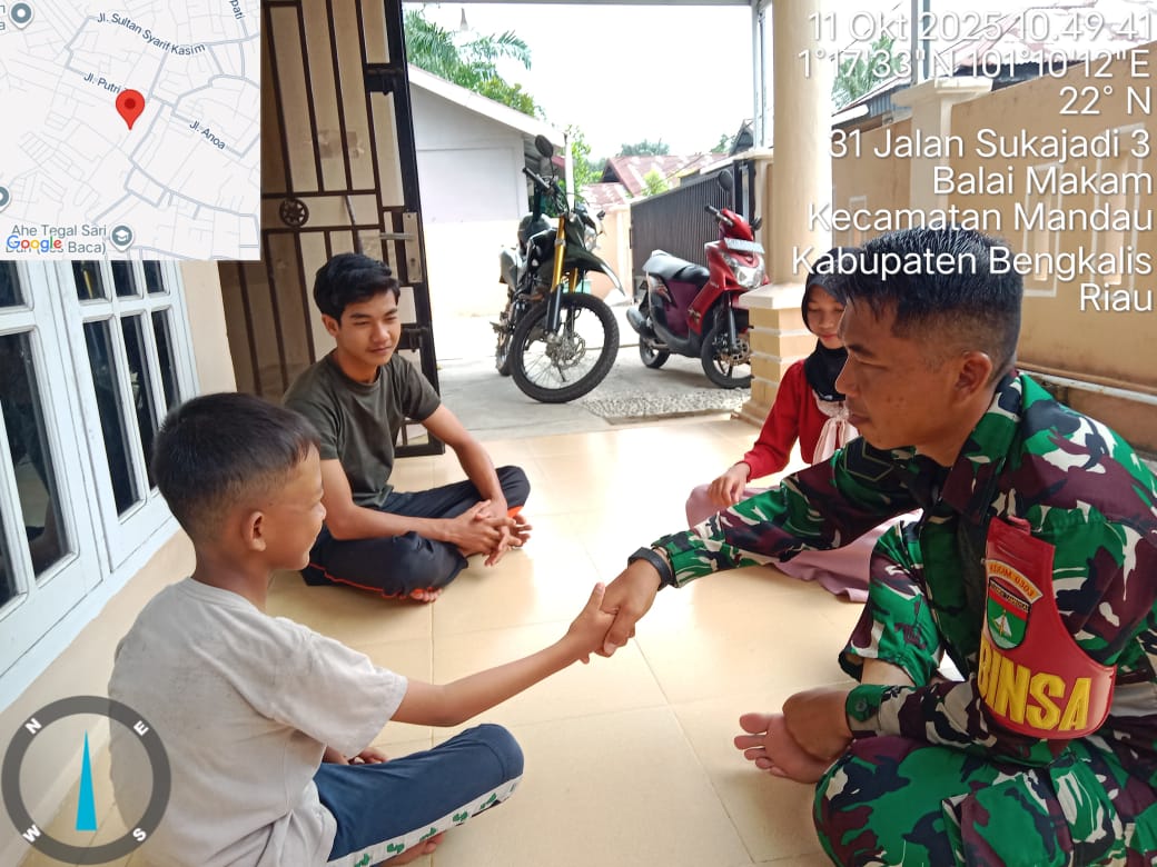 CENTRALNEWS.ID, DURI – Bertempat di lingkungan desa Balai Makam, kecamatan Bathin Solapan – Duri, Danramil 03 Mandau Kapten Czi. Suratmin diwakili Babinsa Sertu M. Fikri pupuk semangat nasionalisme dan suluhkan wawasan kebangsaan, serta pengamalan butir-butir Pancasila di kalangan Anak-anak dan pelajar, Sabtu (11/10).