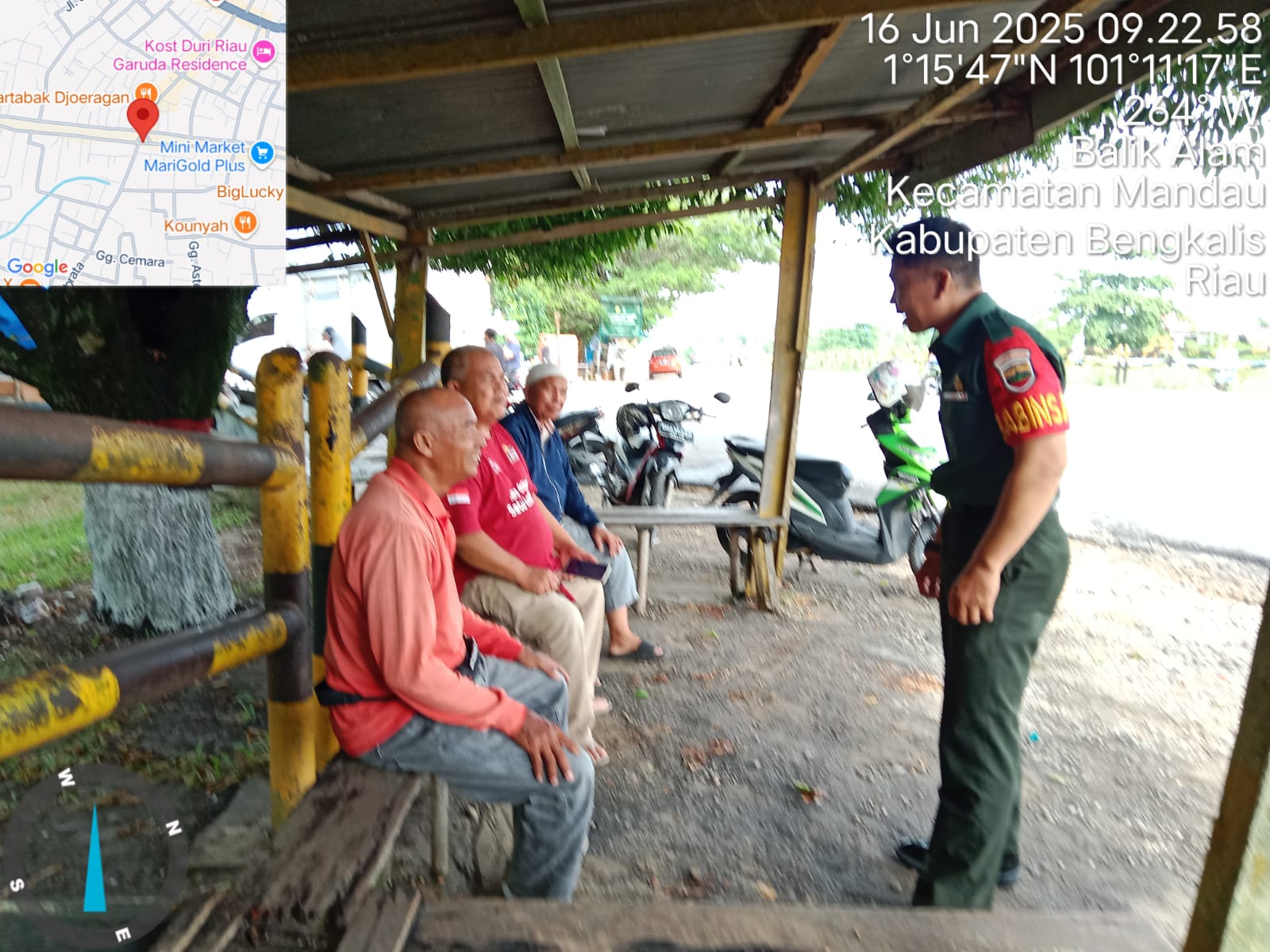 CENTRALNEWS.ID, DURI – Danramil 03 Mandau, Kapten Czi. Suratmin diwakili Babinsa Sertu M. Fikri tajak komunikasi sosial bareng warga binaan di kelurahan Balik Alam, kecamatan Mandau dalam rangka menyuluhkan semangat kebangsaan serta pengamalan nilai luhur Pancasila, Senin (16/6).