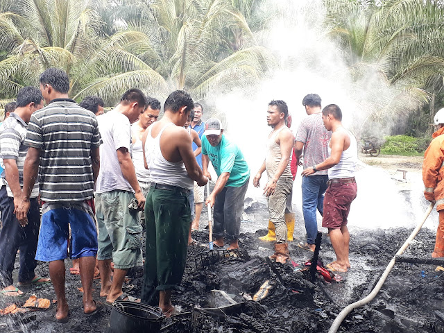 Warga dan tim Damkar Mandau berupaya memadamkan api dan melakukan pendinginan | Foto: Nof-B