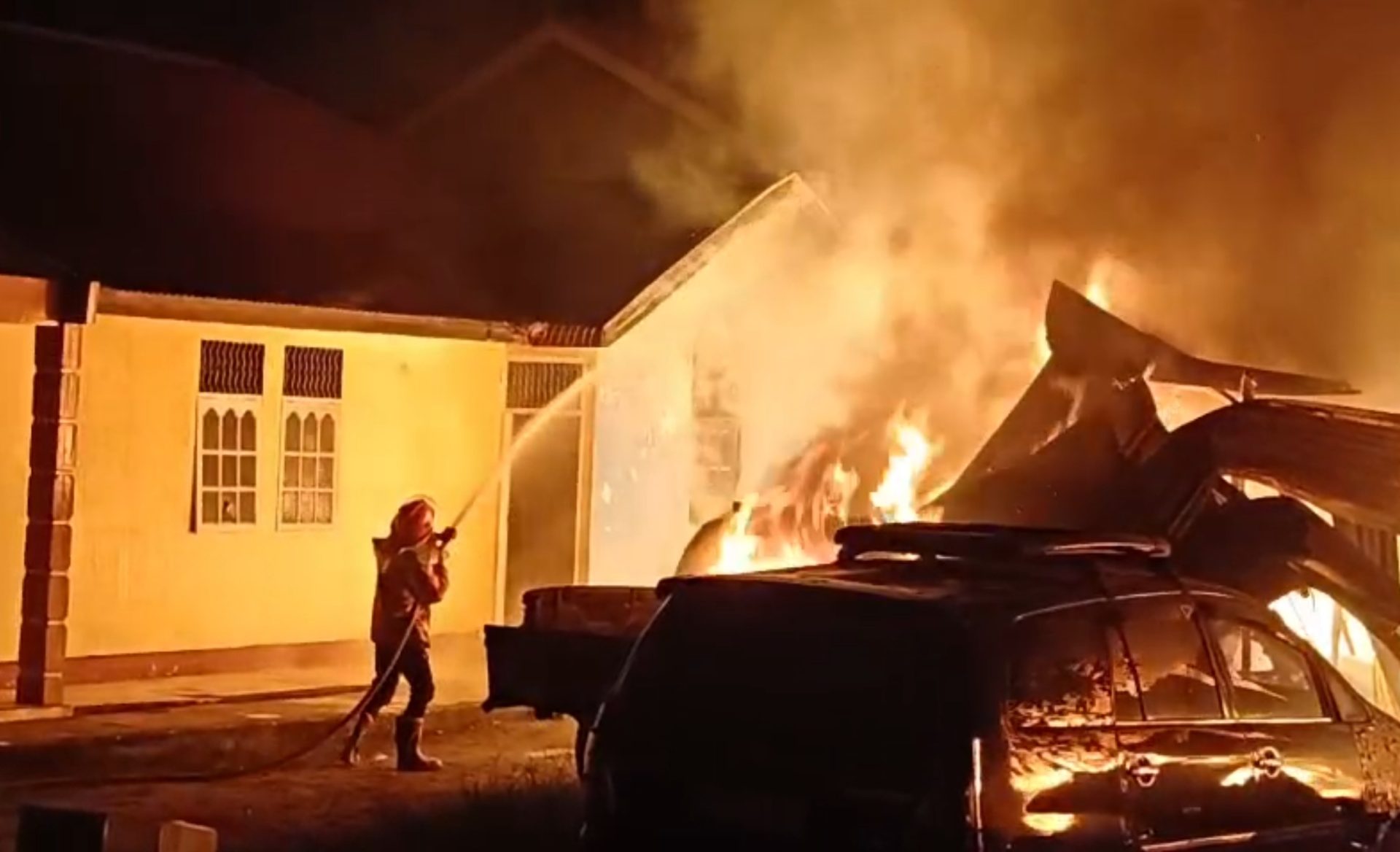 CENTRALNEWS.ID, DURI – Kobaran Sijago Merah kembali memicu kepanikan berujung jerugian dahsyat di desa Simpang Padang, kecamatan Bathin Solapan – Duri. Sebagaimana dilaporkan oleh UPT Damkar Mandau, kobaran api melalap satu unit rumah permanen, satu unit fasilitas bengkel, serta tiga unit mobil sekira pukul 23.10 WIB, Kamis malam (8/1).