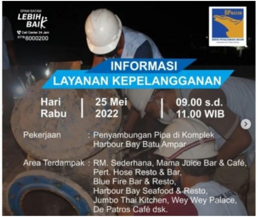 • Layanan Call Center SPAM Batam 24 jam, di nomor (0778) 6000 200