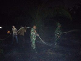 Prajurit Kodim Bengkalis Berjibaku Padamkan Karhutla Berbalut Gulita di Rangsang Pesisir