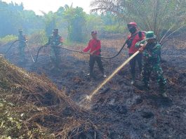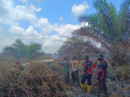 Danposramil Pinggir, Babinsa dan Tim Gabungan Berjibaku Padamkan Karhutla di Buluh...