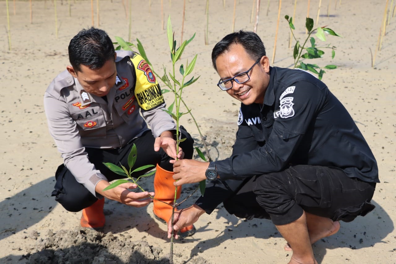 Tanam 100 Mangrove di Pantai Sujung, Polres Natuna Ajak Cegah Abrasi Pantai