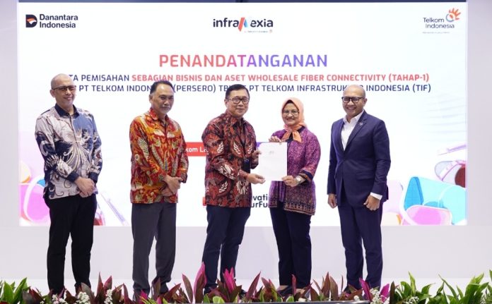 CENTRALNEWS.ID – PT Telkom Indonesia (Persero) Tbk (Telkom) bersama operating company PT Telkom Infrastruktur Indonesia (InfraNexia), resmi menandatangani akta pemisahan (deed of spin-off) sebagian bisnis dan aset wholesale fiber connectivity dari Telkom kepada InfraNexia. Hal ini merupakan tindak lanjut dari persetujuan pemegang saham independen Telkom melalui Rapat Umum Pemegang Saham Luar Biasa (RUPSLB) yang digelar secara daring beberapa waktu lalu. Penandatanganan dilakukan secara langsung oleh Direktur Utama Telkom Dian Siswarini dan Direktur Utama InfraNexia I Ketut Budi Utama yang disaksikan oleh Managing Director Business-2 Danantara Setyanto Hantoro dan Komisaris Telkom Rizal Mallarangeng di Jakarta, pada Kamis (18/12).