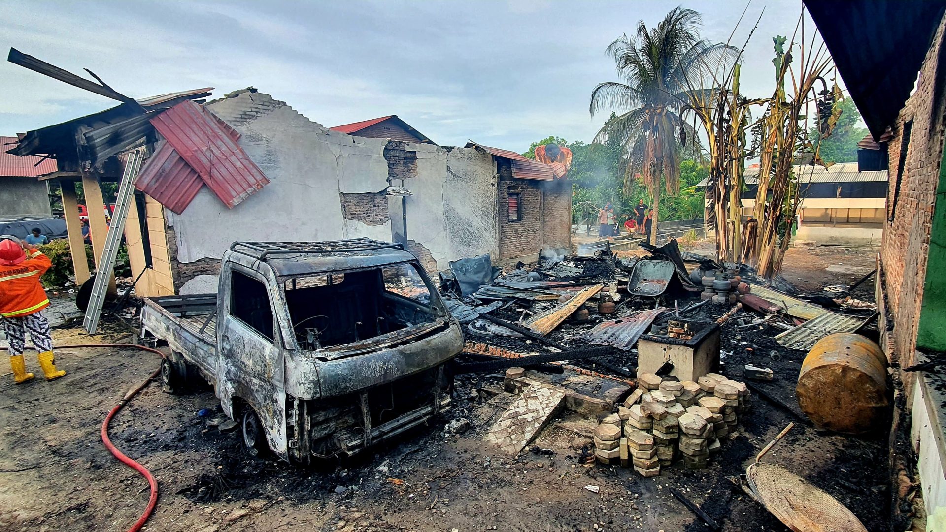Dalam peristiwa ini sebanyak 4 unit bangunan permanen yang terdiri dari 3 unit rumah dan satu unit gudang yang terdapat berbagai peralatan termasuk sejumlah tabung gas LPG 3 Kilogram, satu unit kendaraan roda empat jenis pickup merek Suzuki Carry, satu unit sepeda motor merek Honda Supra X serta sejumlah tabung gas LPG 3Kg ludes terbakar.