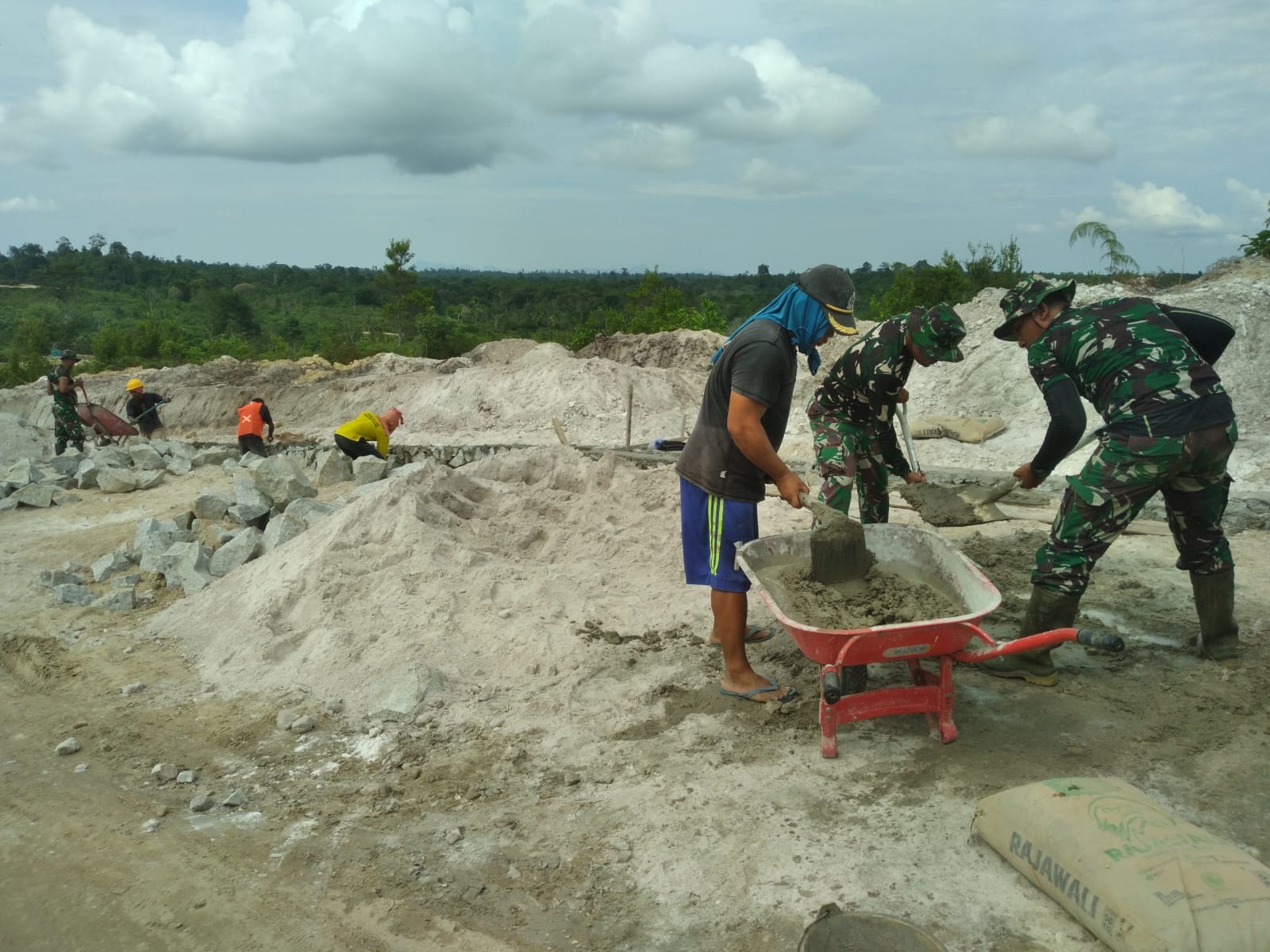 Hal ini bahkan menjadi penyemangat bagi TNI dan masyarakat untuk saling bekerjasama. Meski dihadapkan dengan cuaca panas yang cukup menyengat namun pengerjaan terus berlanjut.