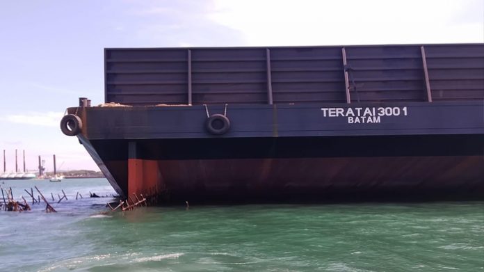 Hanyutnya tongkang tanpa muatan dan tugboat tersebut terjadi pada Januari lalu saat cuaca perairan di Batam cukup buruk.