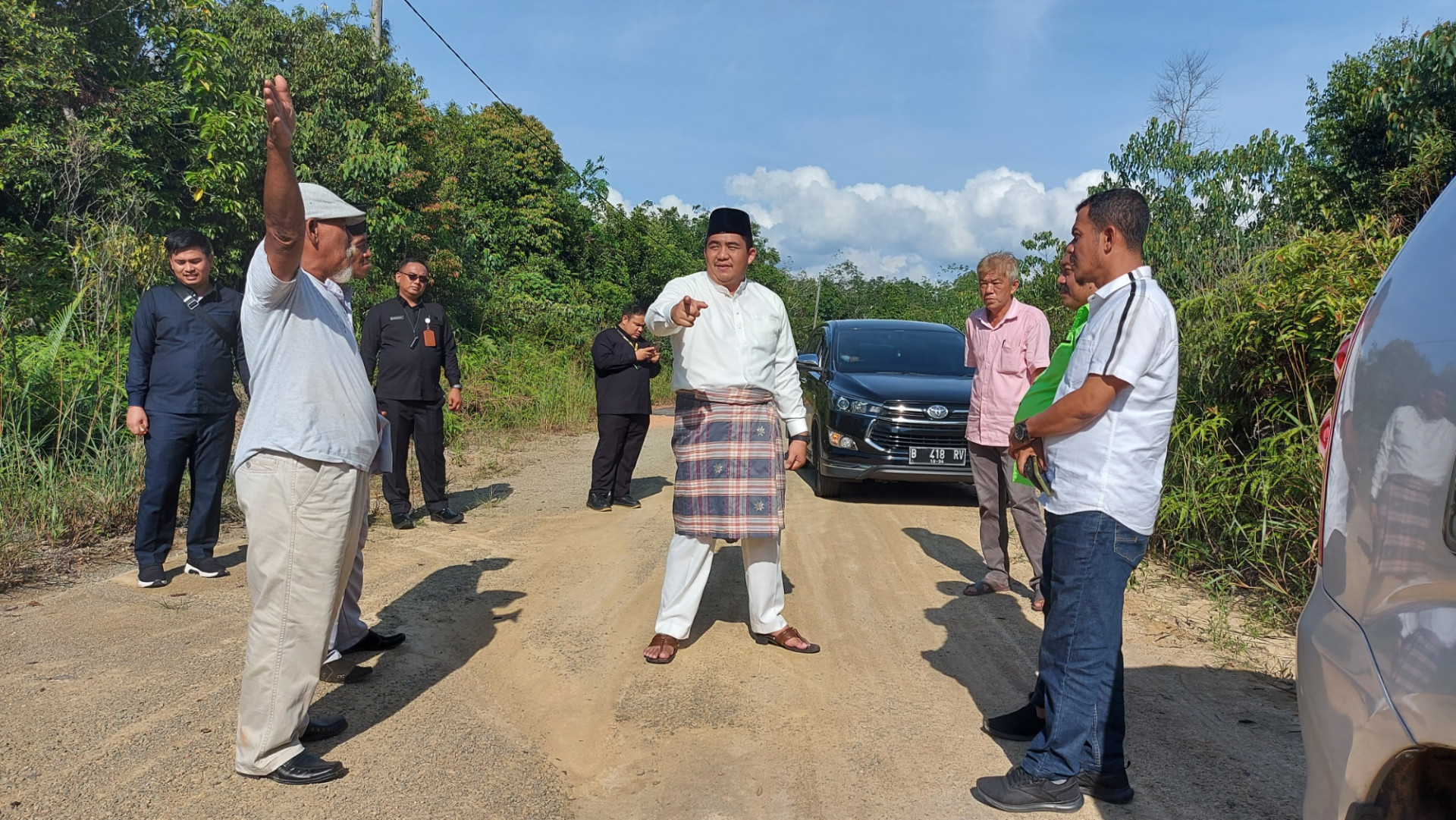 Bambang salah satu masyarakat Desa Sri Bintan saat mendapatkan kesempatan langsung menyampaikan aspirasinya terkait pembangunan jalan aspal di Kampungnya yang masih belum tuntas.