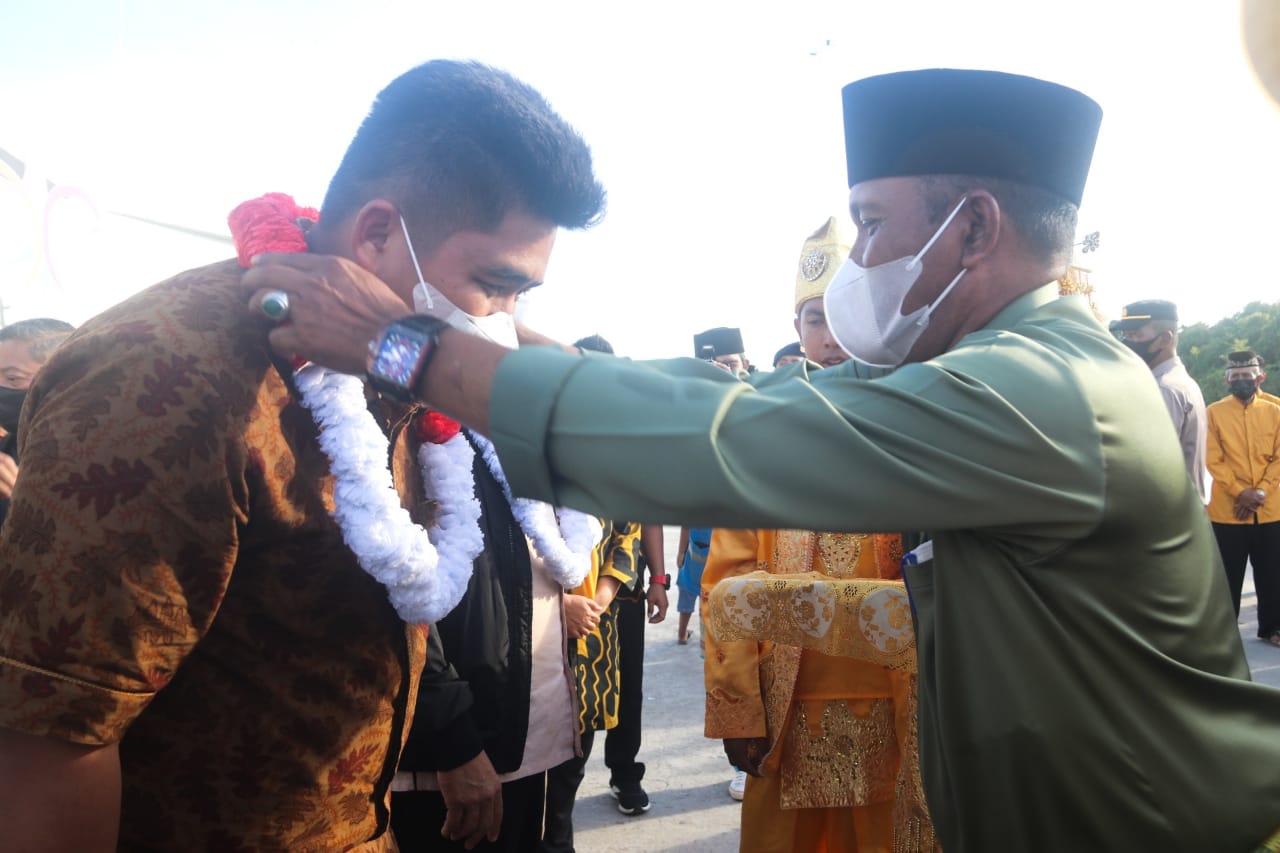 Setelah mengalungkan bunga di leher pemimpin yang murah senyum itu, Roby disambut dengan tepung tawar hingga tarian silat.