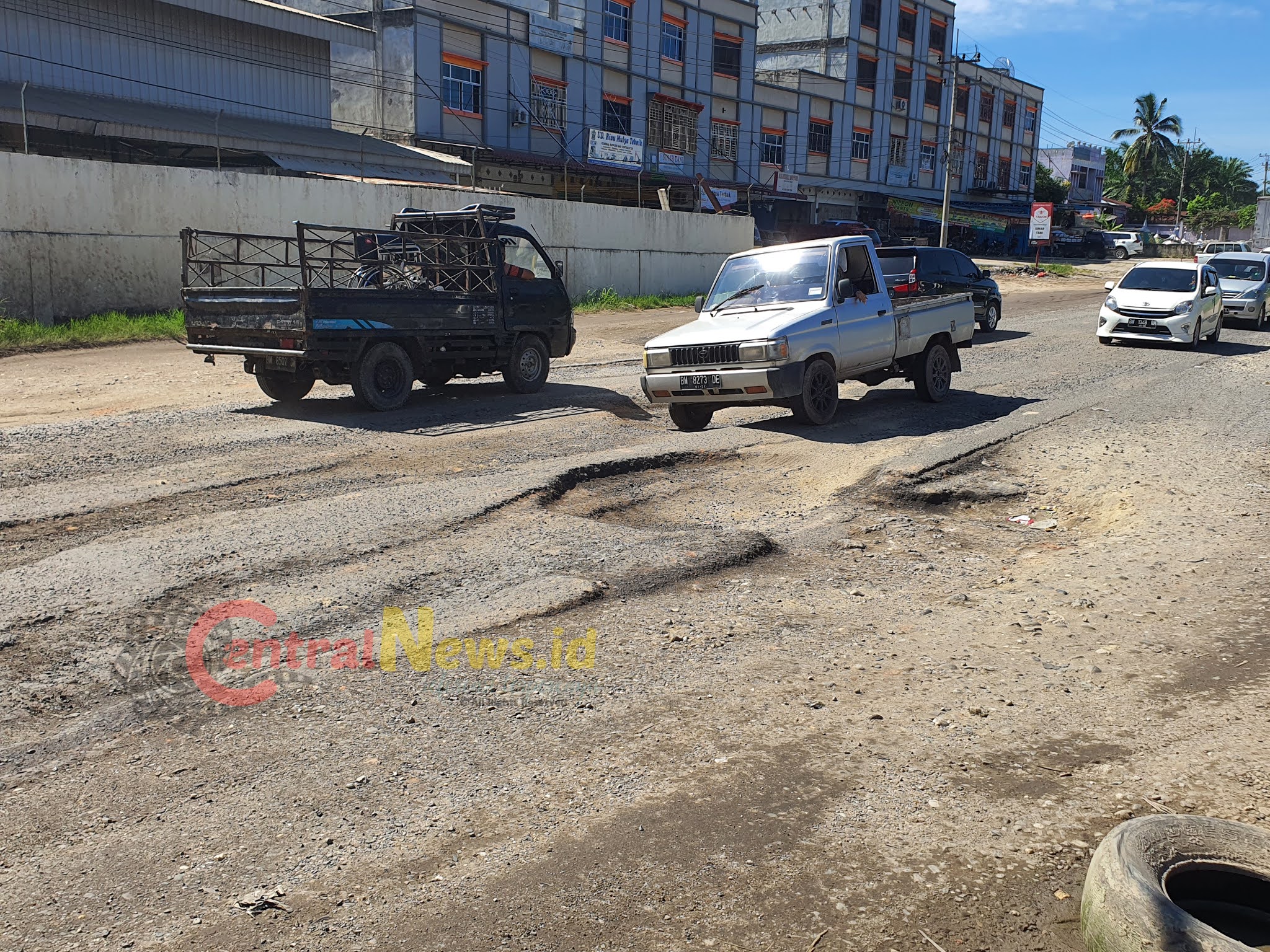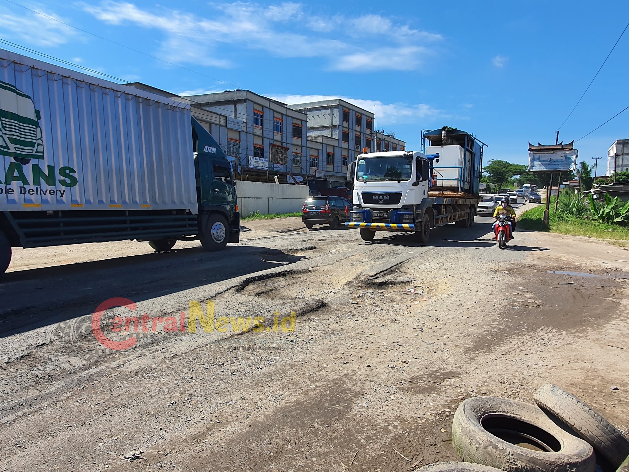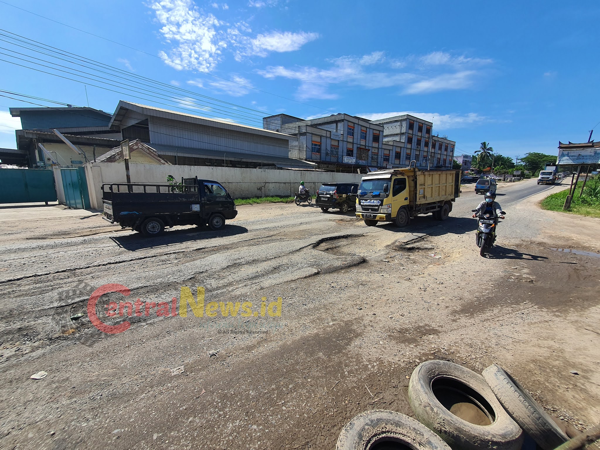 CENTRALNEWS.ID, BATHIN SOLAPAN – Jalan lintas Sumatera sektor Duri – Dumai, Kilometer 3,5 Kulim, Kecamatan Bathin Solapan tampak rusak parah, Kamis (17/6).