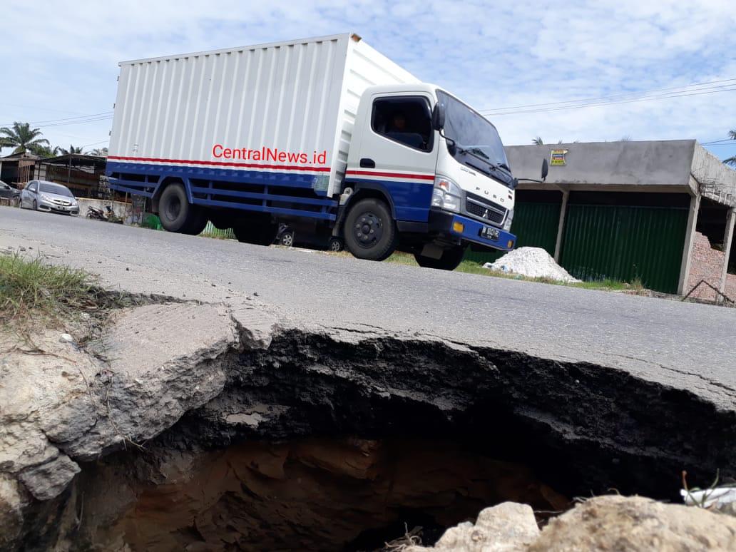 Amir mengatakan, sampai siang lalu ruas jalan terus meretak, terpotong dan akhirnya terjatuh ke dalam lubang. Keadaan itu terus terjadi, mengingat bobot kendaraan yang berlalu terbilang berat.