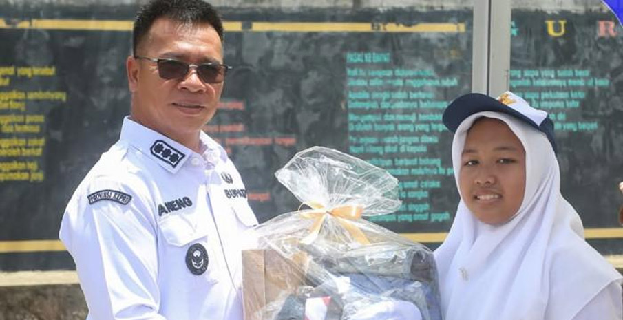 Bupati Aneng bersama Wakil Bupati Raja Bayu mewujudkan visi dan misinya melalui program bantuan perlengkapan sekolah gratis bagi pelajar tingkat Sekolah Dasar (SD) dan Sekolah Menengah Pertama (SMP).